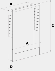 Шкафовете за вграден монтаж и повърхностен монтаж, изработени от поцинкована ламарина, са предназначени за инсталиране на разпределители в диапазона от 2 до 16 вериги. Предните части на шкафовете са прахово боядисани в бяло (RAL 9016).